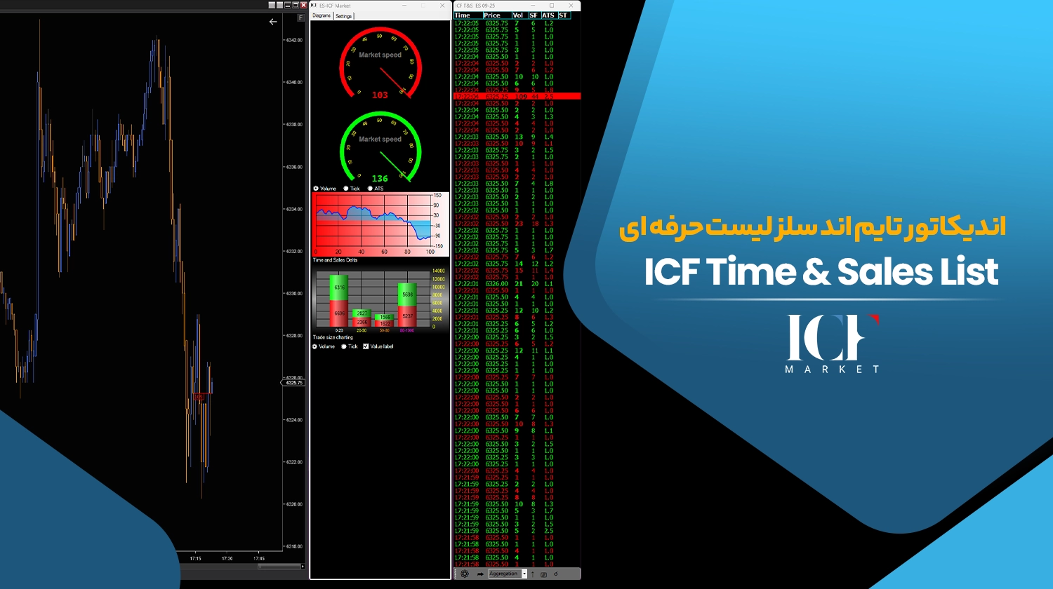 قابلیت انتخاب رنگ و فیلتر برای اندازه سفارشها و معاملات بزرگ، تعیین فیلترهای Ask Trade Size (ATS) و Bid Volume Size (AVB)، و تنظیم دلتا و محدودههای زمانی برای دقت بیشتر در تحلیل جریان سفارشات. -